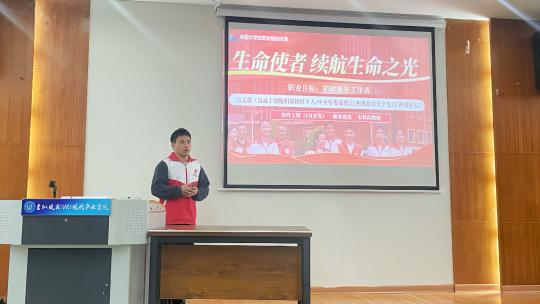 3月4日,澳门银河娱乐城 在图书馆二楼报告厅举办“职业规划大赛优秀选手展演”活动。江西省第三届大学生职业规划大赛决赛就业赛道本科组金奖获得者何明辉、银奖获得者余文鑫进行现场展示,澳门银河娱乐城 40余名学生到场观看。