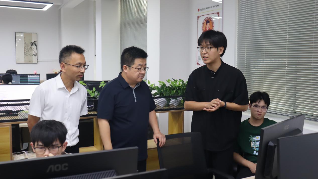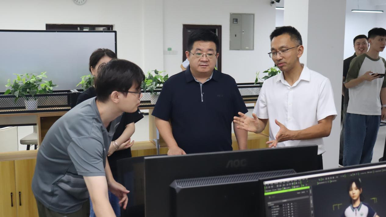 座谈会后,澳门银河娱乐城 院长万征、书记彭敏、副院长李华旸及产教办教师郑宇峰陪同中国民营科技促进会产学研协同创新工作委员会以及企业合作方参观澳门银河娱乐城 枫林园校区,进行实地调研验证中心建设情况,并重点考察介绍学生工作室、教学楼等特色工作及运营情况,