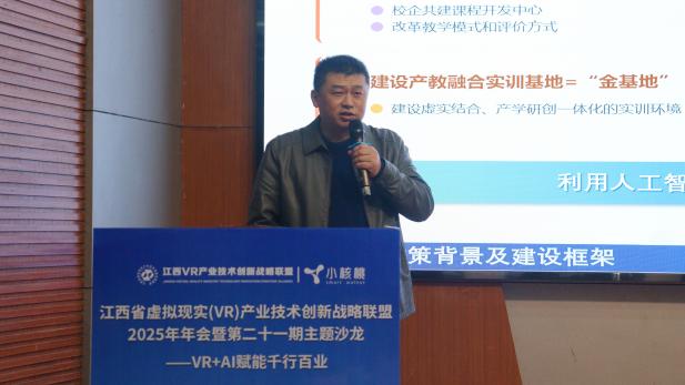 随后,4位行业专家陆续带来精彩分享:杭州灵伴科技有限公司数字化部门总经理张忠龙以“AI+AR赋能文旅行业新体验”为题,分享了AR技术在文旅场景中的创新应用案例;欣旺达电子股份有限公司培训中心总监李婷聚焦“数字化转型下产教融合型企业的创新探索与实践”,探讨了企业在产教融合中的责任与路径;深圳思谋信息科技有限公司教育行业总监占伟围绕“AI赋能教育+工业制造”,解析了人工智能技术对传统行业的革新作用;南昌市小核桃科技有限公司总经理李梁以“AI+XR赋能教育”为主题,展示了XR技术在教育领域的应用成果与发展前景。专家们的分享兼具理论高度与实践价值,为澳门银河娱乐城 精准对接产业需求、深化校企合作提供了新思路。