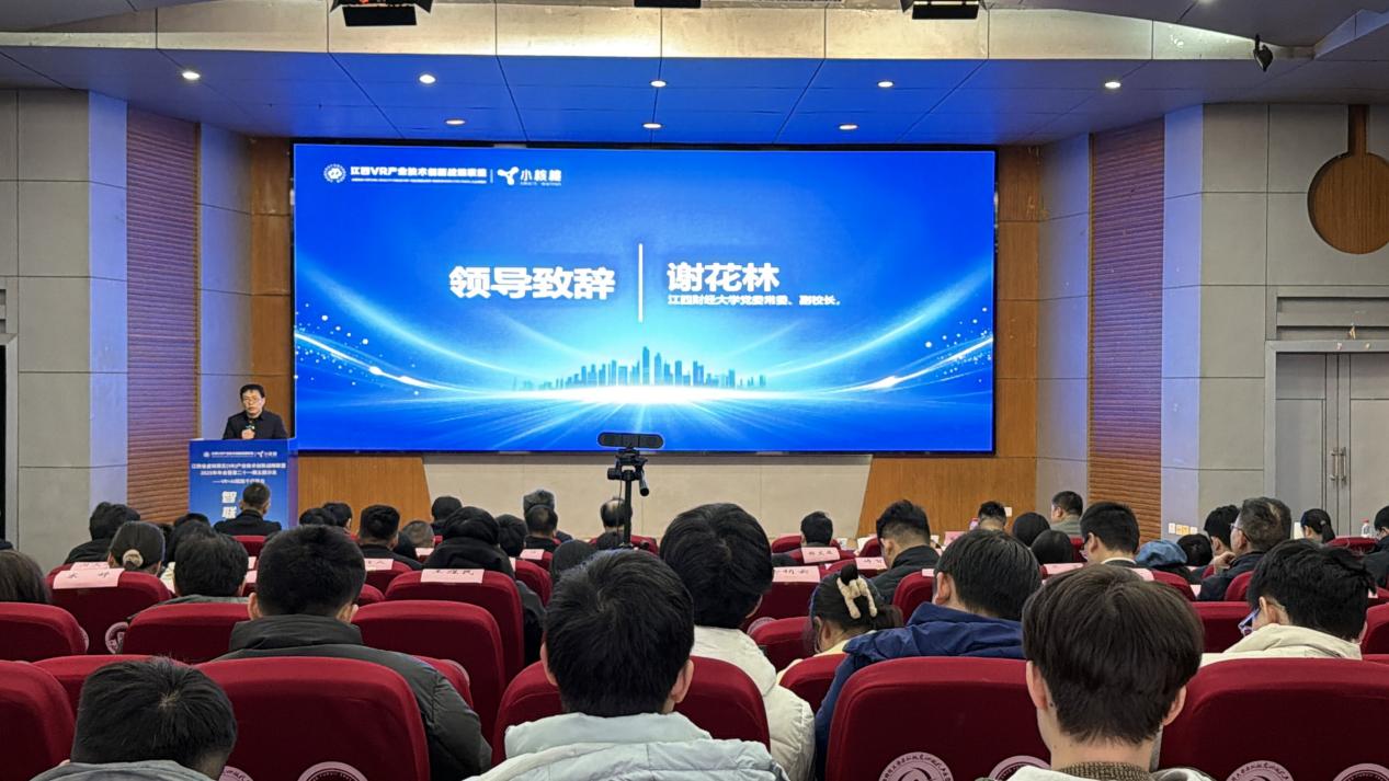 论坛于下午开始,谢花林副校长首先发表致辞,深刻阐释了数智时代VR产业发展的机遇与挑战,与校企双方以论坛为纽带,深化合作、携手共赢。