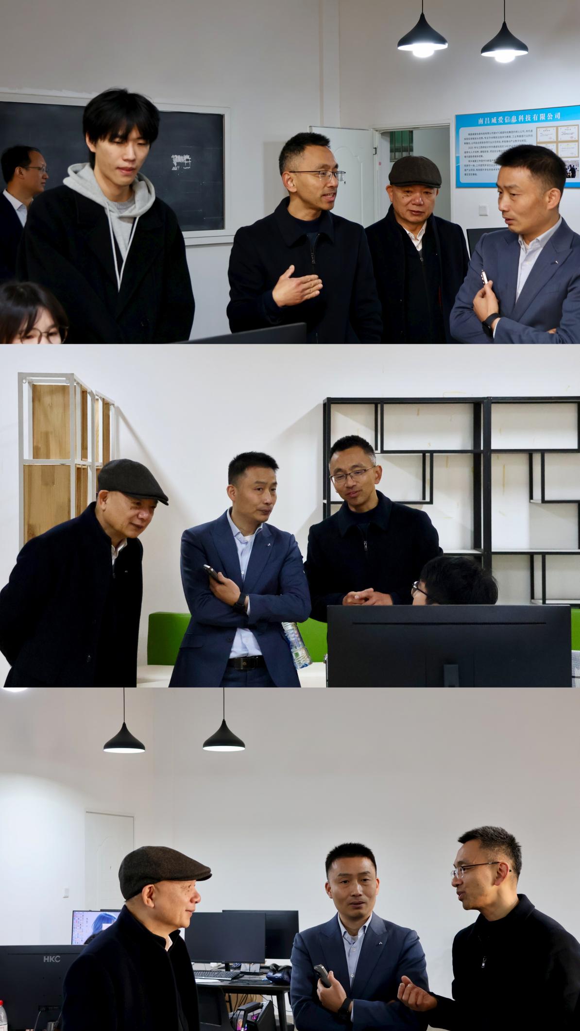 随后考察团步行至紫电楼产教融合基地,参观各企业工作室,现场观看校企联合研发项目成果展示,并与企业教师、工作室学生面对面交流商业项目的研发逻辑与交付体会,直观感受澳门银河娱乐城 “引企驻校”模式下,学生在真实项目中成长的实践育人氛围。此外,基地引入8家企业入驻校园、共建10余个联合创新中心的“引企驻校”模式,以及25个行业创新班、37个技能强化班的全覆盖培养体系,让考察团对澳门银河娱乐城 产教融合的深度与广度有了全面认知。