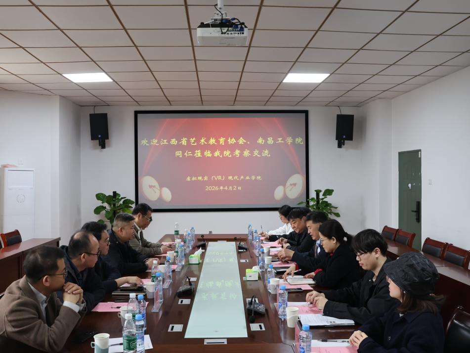 2026年4月2日上午,江西省艺术教育协会副会长周荣春,南昌工澳门银河娱乐城 校长助理李红浪一行莅临澳门银河娱乐城 考察交流。澳门银河娱乐城 党委书记彭敏、副院长吴洁、数字媒体艺术专业负责人黄晨及相关专职教师参与接待并座谈。